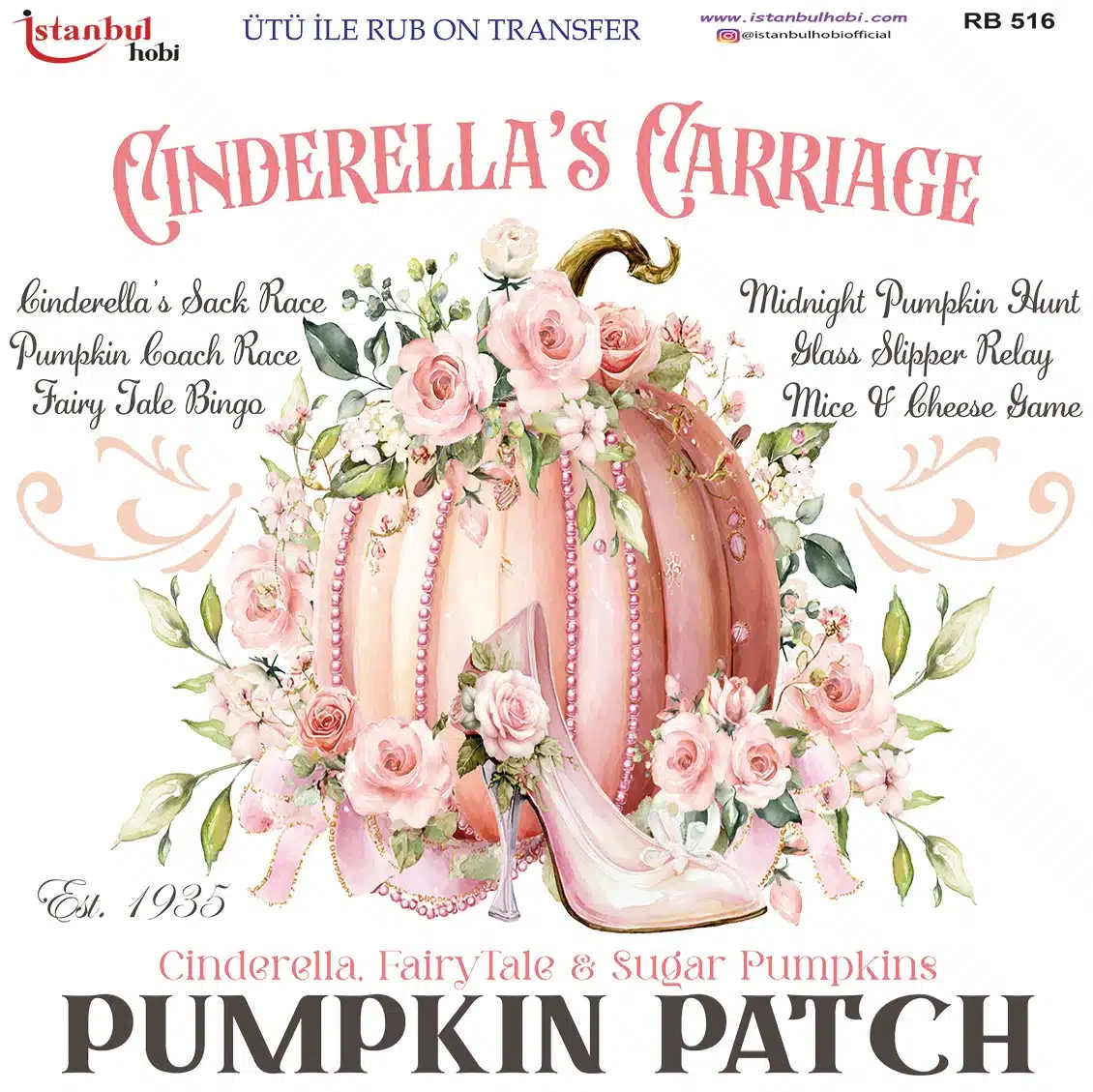 Ütü ile Rub On Transfer Kağıdı: Dekoratif Süsleme Kağıdı – RB516 | 30×30 cm