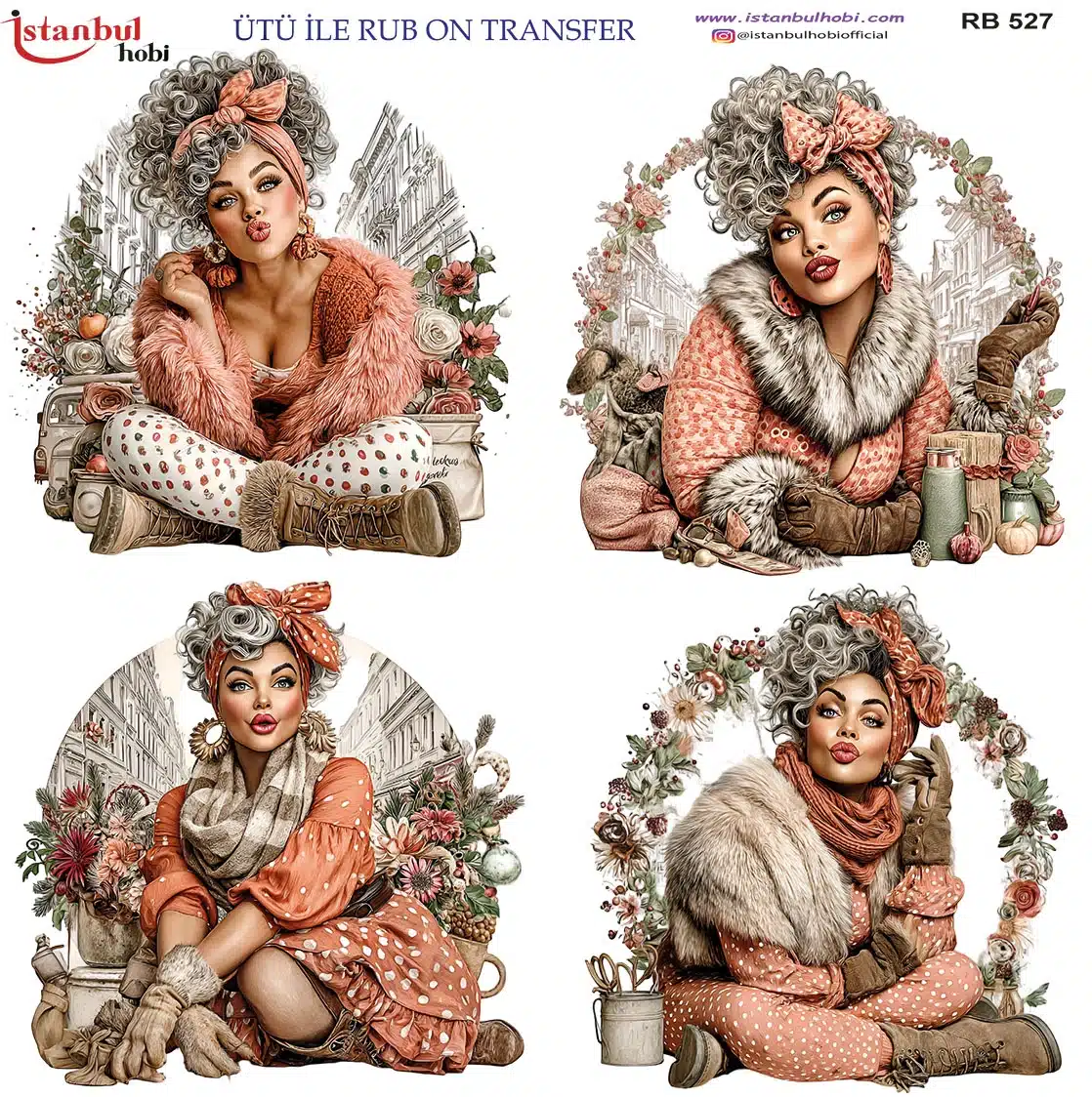 Ütü ile Rub On Transfer Kağıdı: Dekoratif Süsleme Kağıdı – RB527-İST | 30×30 cm
