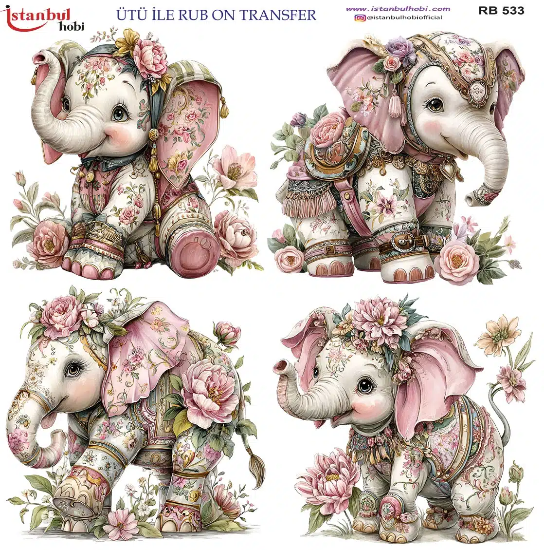 Ütü ile Rub On Transfer Kağıdı: Dekoratif Süsleme Kağıdı – RB533-İST | 30×30 cm