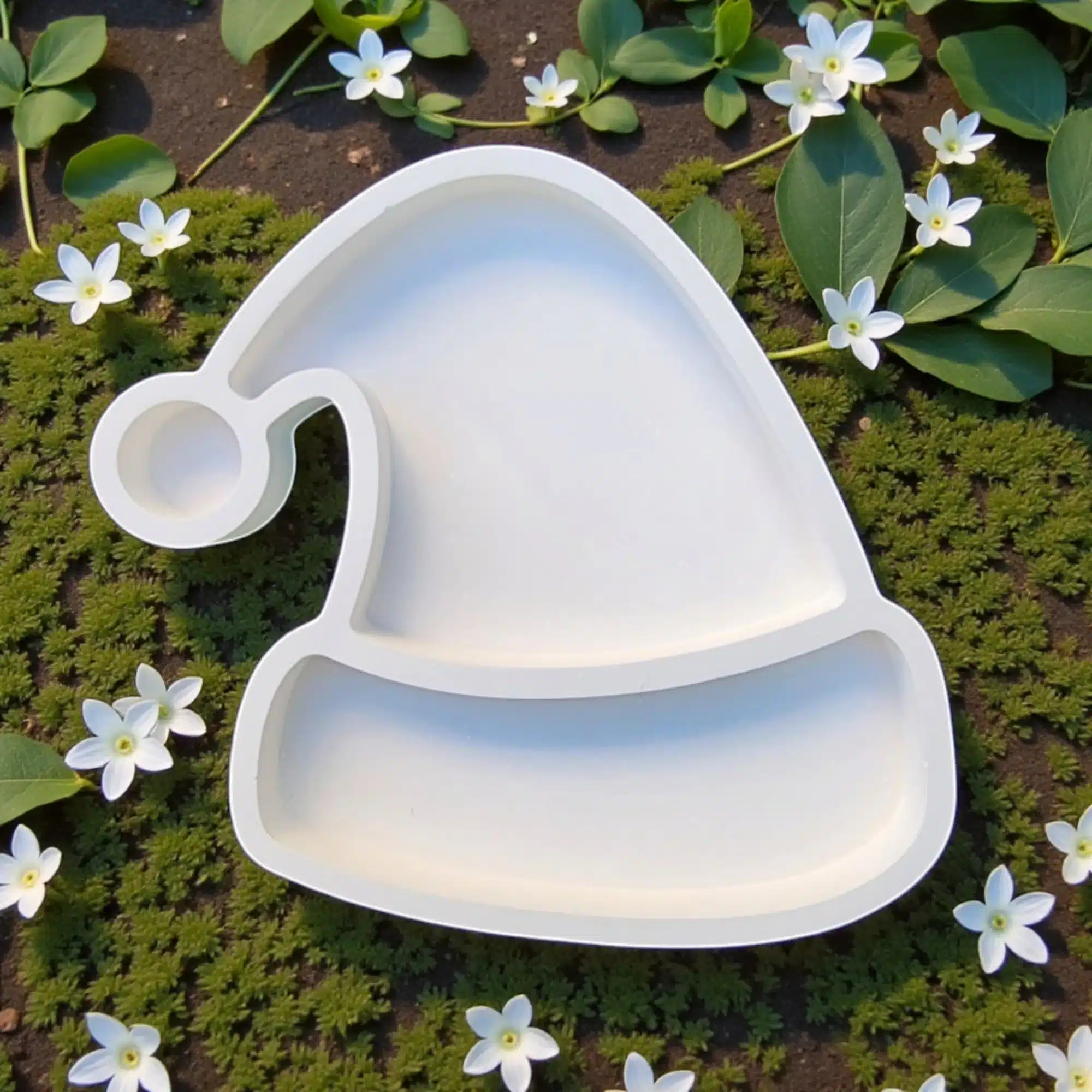 17×18 cm genişliğinde ve 2 cm derinliğinde olan bu tasarım, şapkanın ponponu, şerit kısmı ve ana gövdesi olmak üzere üç ayrı bölmeden oluşur. Bu bölmeli yapı sayesinde kuruyemiş, çikolata, draje veya kahve yanı atıştırmalıklarınızı birbirine karıştırmadan şık bir şekilde servis edebilirsiniz. Taş Tozunun verdiği ağırlık ve tokluk hissi, ürünü basit bir plastik tabaktan ayırarak ona kaliteli ve kalıcı bir obje kimliği kazandırır.